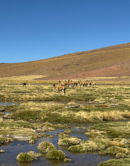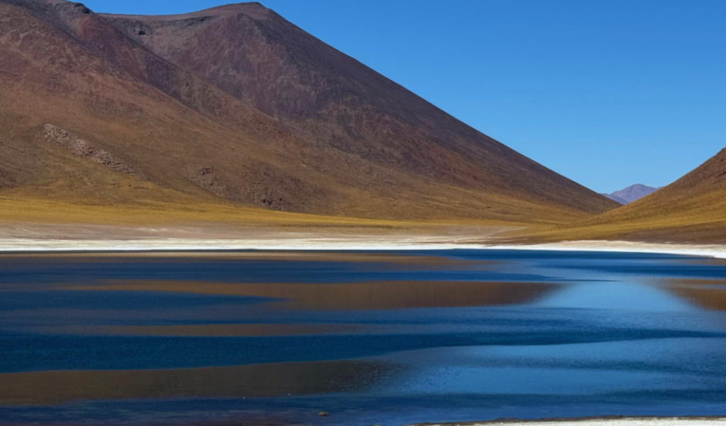 Já na chegada ao Atacama, somos recebidos por um espetáculo visual que nos transporta para outro mundo. Vulcões adormecidos, como o Licancabur, dominam a paisagem, oferecendo um contraste impressionante com as planícies salinas e os vales lunares. As lagunas altiplânicas, como a Laguna Cejar e a Laguna Tebinquiche, são verdadeiros oásis no meio do deserto, com suas águas salgadas e paisagens surrealistas. O Salar de Atacama, a maior salina da América do Sul, é um mar de sal que se estende por quilômetros, refletindo o céu como um espelho gigante.